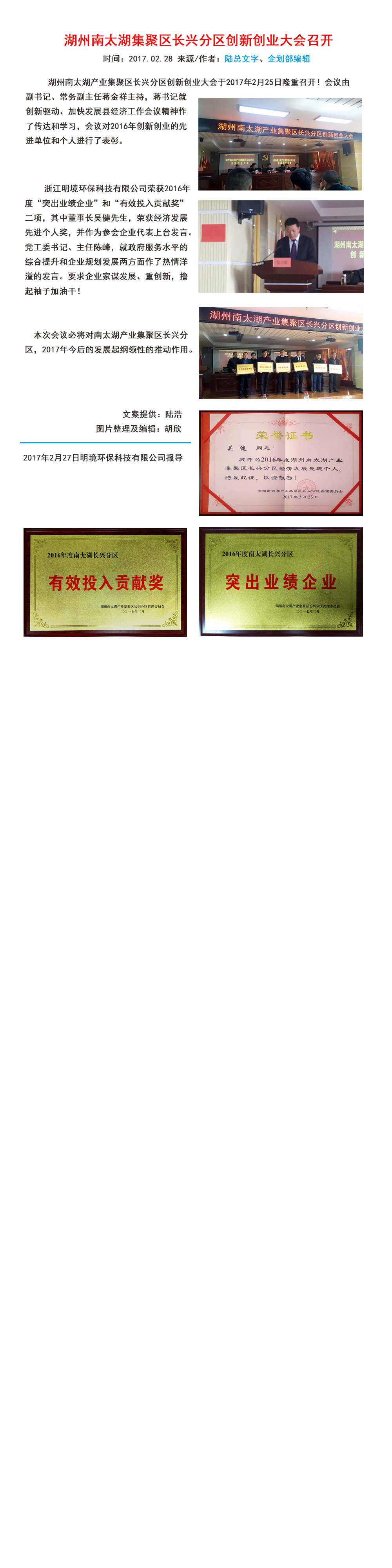 湖州南太湖集聚區長興分區創新創業大會召開