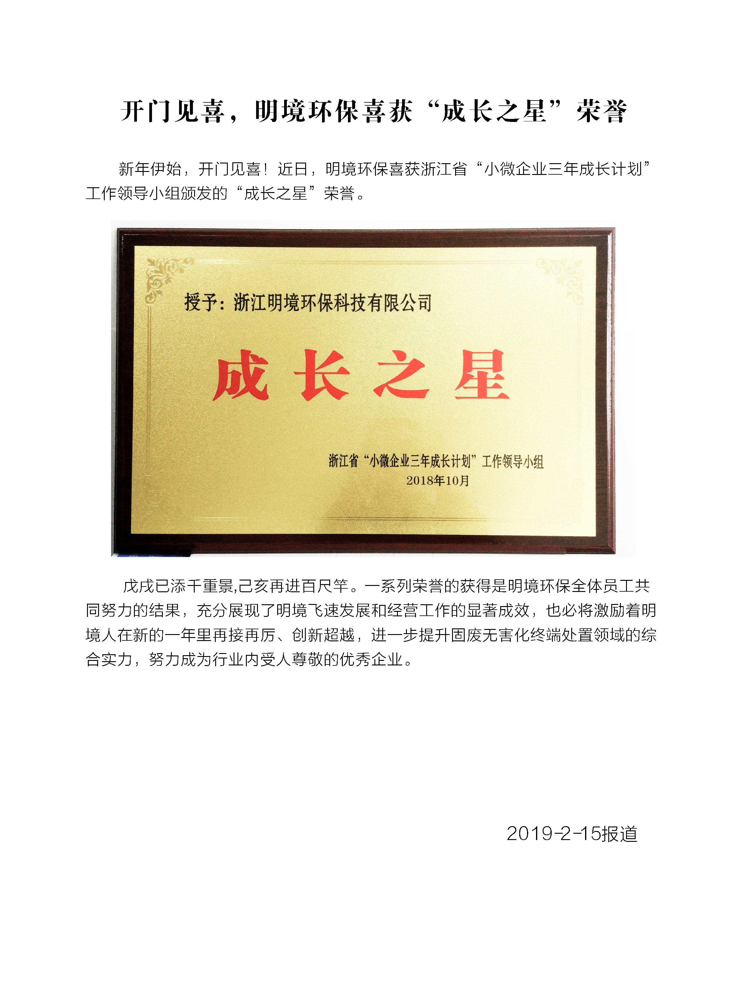 開門見喜,明境環保喜獲“成長之星”榮譽