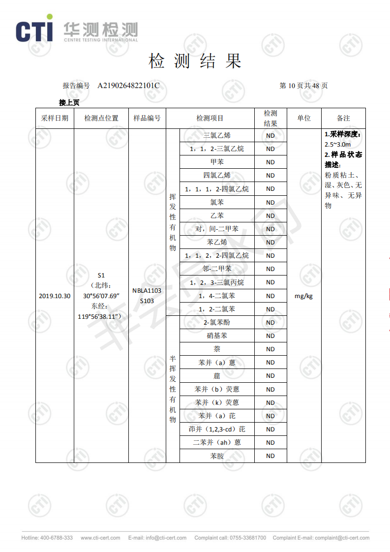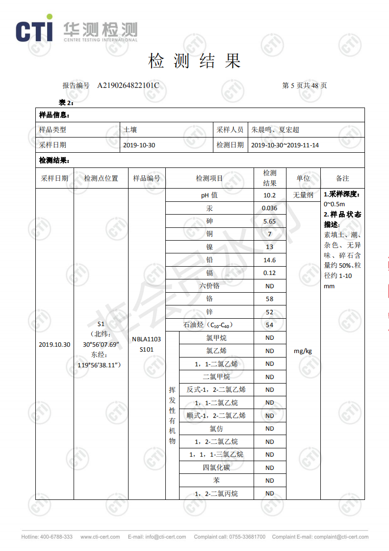 浙江明境環保科技有限公司2019年度土壤及地下水自行監測信息公開