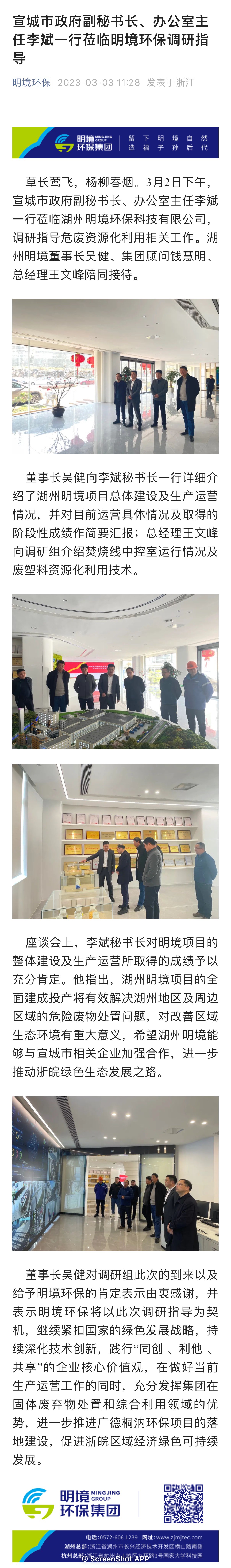 宣城市政府副秘書長、辦公室主任李斌一行蒞臨明境環保調研指導