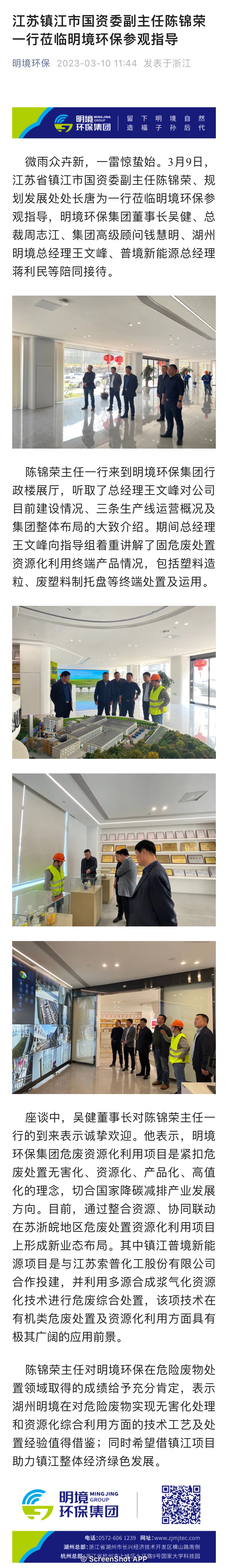 江蘇鎮江市國資委副主任陳錦榮一行蒞臨明境環保參觀指導