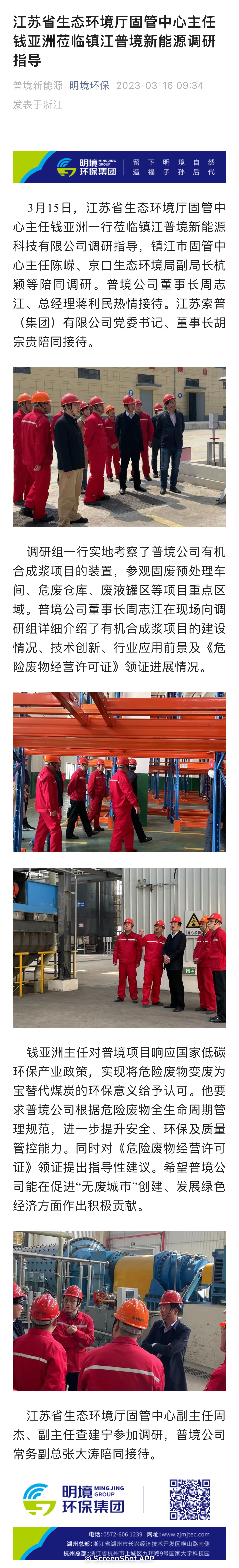 江蘇省生態(tài)環(huán)境廳固管中心主任錢亞洲蒞臨 鎮(zhèn)江普境新能源調(diào)研指導(dǎo)