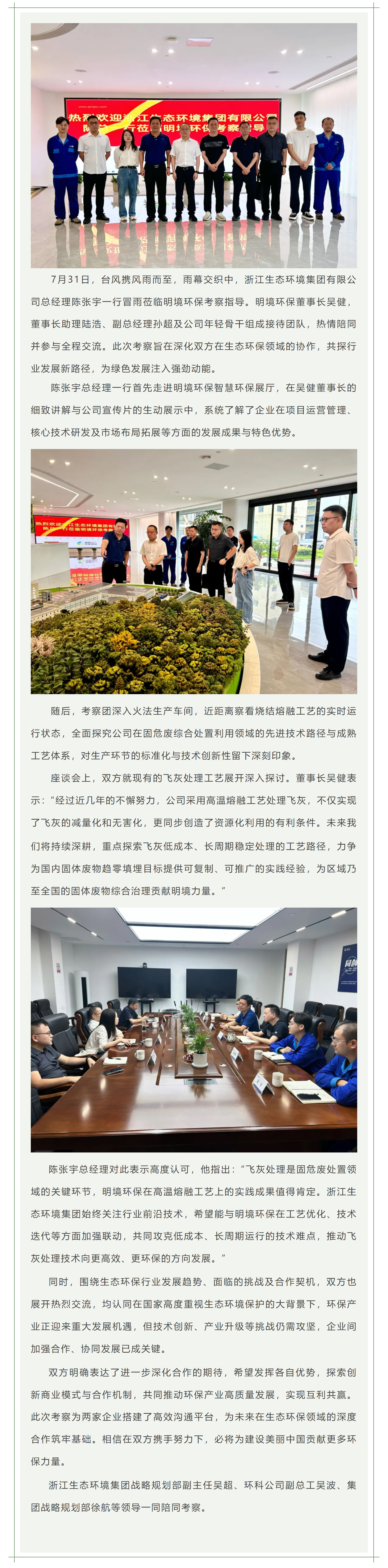 浙江生態環境集團有限公司陳張宇一行蒞臨明境環保考察指導